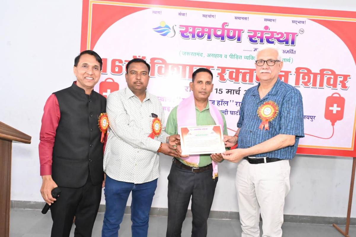 जयपुर, 15 मार्च। मानवता व परोपकार के लिए समर्पित समर्पण संस्था द्वारा रावत पब्लिक स्कूल प्रताप नगर में आयोजित 16 वें रक्तदान शिविर में कुल 88 युनिट रक्त एकत्रित किया गया ।