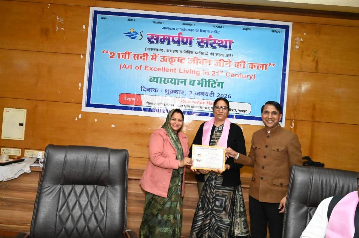 जयपुर, 02 जनवरी । “ जीवन प्रबंधन से ही उत्कृष्ट जीवन का निर्माण सम्भव है। आधुनिक समय में उत्कृष्ट जीवन स्वास्थ्य, ध्यान, गहरा काम, सार्थक रिश्ते व निरंतर सीखने में समाहित है । उक्त विचार समर्पण संस्था द्वारा नववर्ष पर राज्य कृषि प्रबन्ध संस्थान दुर्गापुरा के कॉन्फ़्रेंस हॉल में आयोजित “ 21 वीं सदी में उत्कृष्ट जीवन जीने की कला “ विषयक व्याख्यान व मीटिंग में मुख्य वक्ता संस्थापक अध्यक्ष आर्किटेक्ट डॉ. दौलत राम माल्या ने व्यक्त किये ।