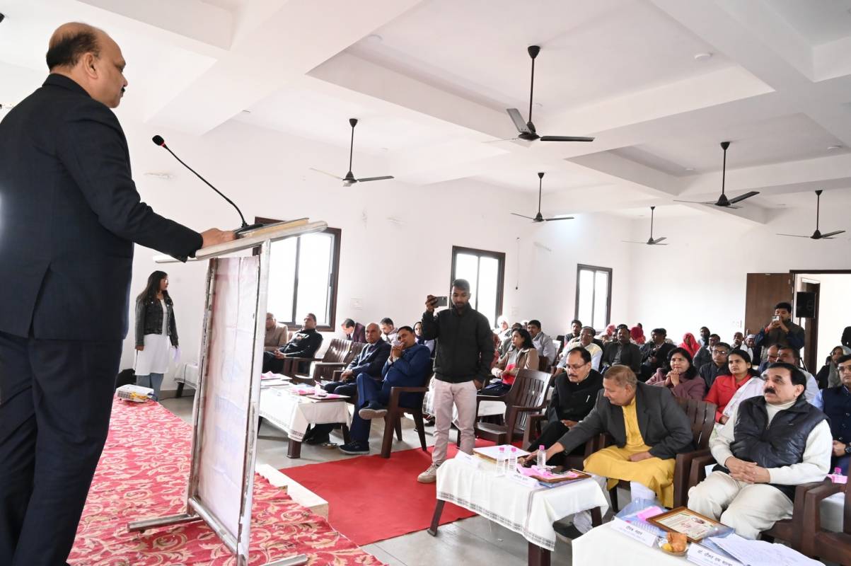 विशिष्ट अतिथि राज्य कृषि प्रबन्ध संस्थान के निदेशक श्री हीरेन्द्र शर्मा, सेवानिवृत्त अतिरिक्त आयुक्त राज्य कर श्री राधाकिशन बैरवा ने भी अपने विचार व्यक्त किये ।