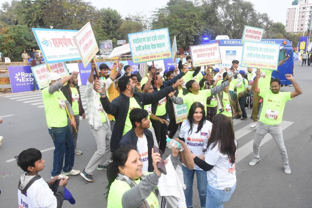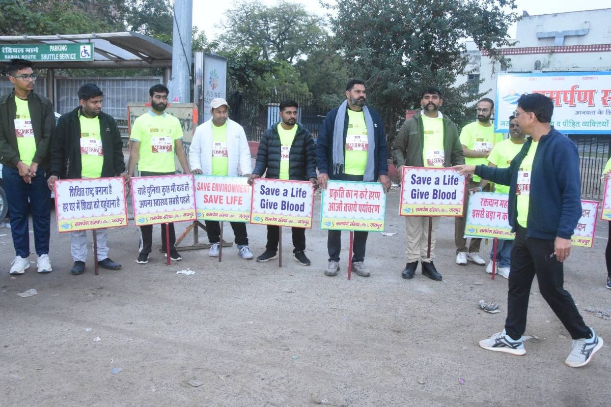 जयपुर, 01 फ़रवरी । मानवता व परोपकार के लिए समर्पित समर्पण संस्था के सदस्यों ने 17 वीं एयू जयपुर मैराथन में पर्यावरण, स्वच्छता , रक्तदान, बालिका शिक्षा व सेवा से सम्बन्धित सामाजिक जागरूकता संदेशों का प्रदर्शन किया । मैराथन में संस्था से जुड़े 102 सदस्यों नें पंजीकरण करवाकर टीम के साथ 6 किमी. ड्रीम रन में भाग लिया । जिसकी शुरुआत में सभी सदस्यों ने समर्पण प्रार्थना उच्चारित की जो सभी के आकर्षण का केंद्र रही ।